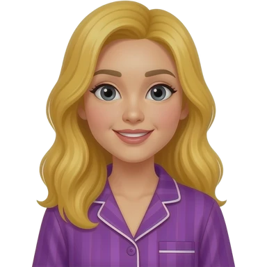 an asian women with golden hairs in vibrant purple color pajamas emoji