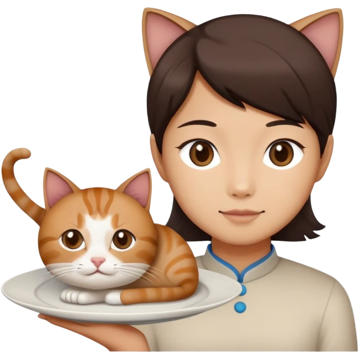 An Asian person with a plate in front of them with a cat on it emoji | AI Emoji Generator