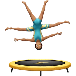 An athletic person soaring high above a trampoline, executing an acrobatic flip with perfect form. The scene captures motion and energy, with a dynamic pose, stretched limbs, and a focused expression. The background suggests a professional trampoline arena with safety padding.emoji