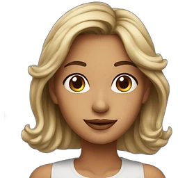 An attractive and impressive girl of European appearance with long blue hair and a white shirt smiles emoji