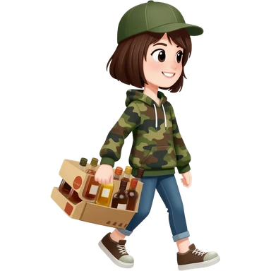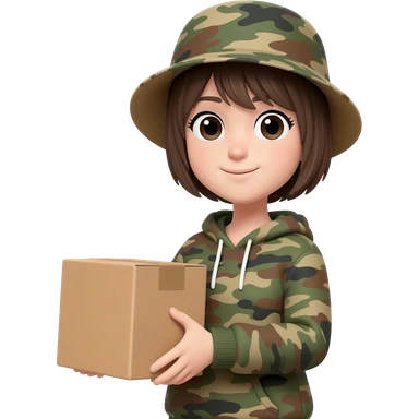 A light skin girl with black hair in a camo crop top emoji