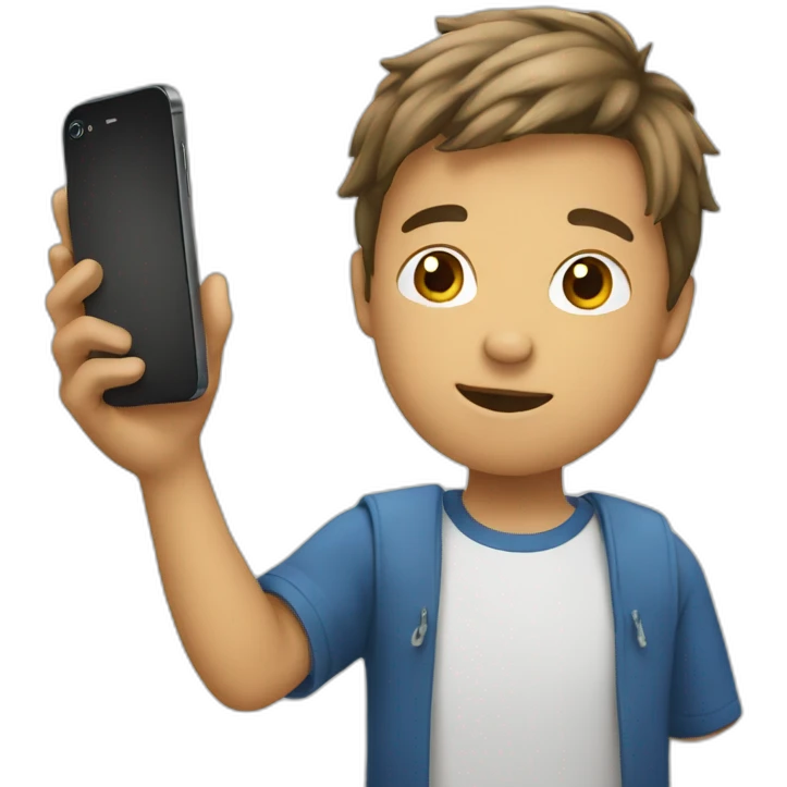 An boy holding an iPhone an chatting with it emoji | AI Emoji Generator