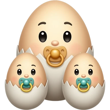 A large mother egg with two smaller hangs cradling a smaller baby egg with a pacifier emoji