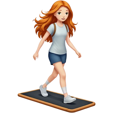 Cute Ginger girl long hair walking on walking pad emoji