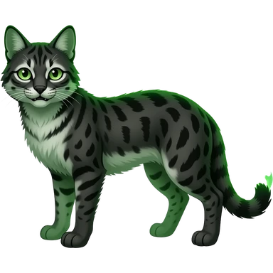 Eldritch green-fiery Dark-deep-blackish-Greenish Zombie-serval, full body emoji