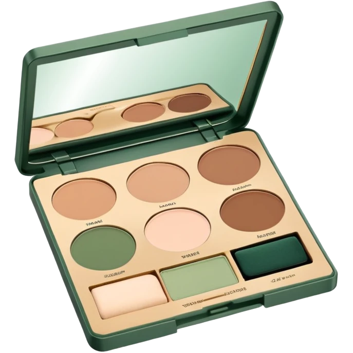 An elegant open makeup palette with earthy-toned eyeshadows and a small mirror, minimalist line art, warm beige and marsh green background emoji | AI Emoji Generator