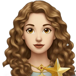 An elegant woman with golden-blonde curls in an updo. Wearing a sparkling pink ball gown with puffed sleeves. She holds a silver star wand and has a kind, radiant expression. Embodying charm and magic. emoji | AI Emoji Generator