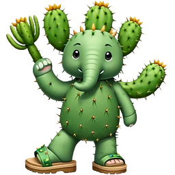 Elephant made out of cactus in the desert wearing a sandal emoji