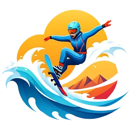 An emblem featuring a dynamic combination of a kite, a bicycle, and a windsurfing sail, all intertwined in motion. The design emphasizes speed, adventure, and adrenaline, with sharp lines and vibrant colors symbolizing the thrill of extreme sports.emoji