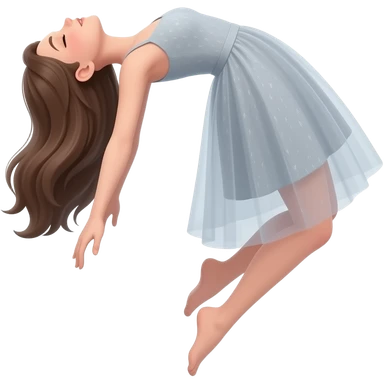 An emojiA girl levitating in space, body arched backward in a bridge-like pose, head tilted back, arms hanging loosely, legs slightly bent and relaxed wearing a beautiful dress. The background Transparent emoji