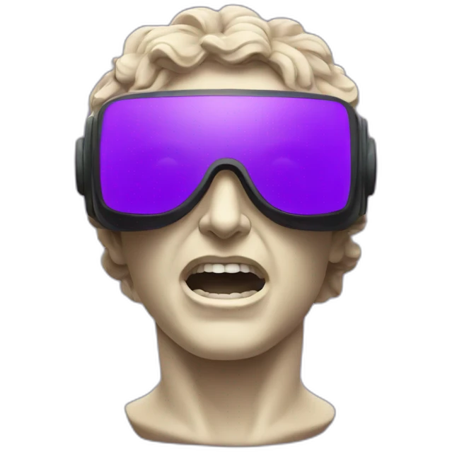 an EMOJI OF A ancient young greek statue, wearing VR headset, shouting purple colors, emoji | AI Emoji Generator