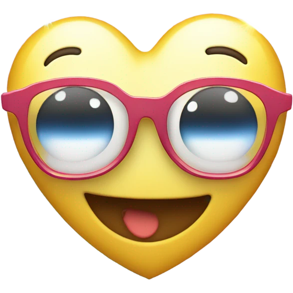 An emoji of a computer with a beaming smile and twinkling eyes, glasses. holding a big heart with sparkels clean white background.