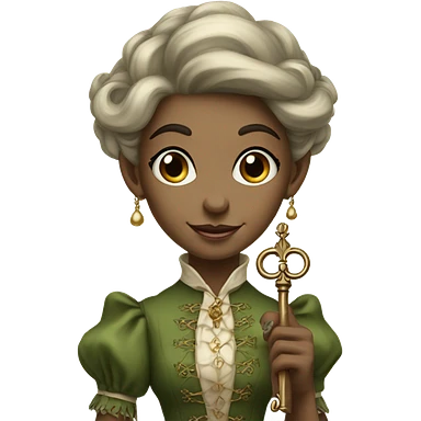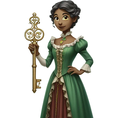 an elf woman login holding a big key in Victorian dress full body emoji