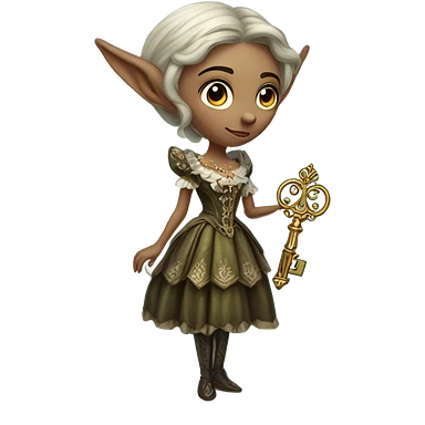 an elf woman login holding a big key in Victorian dress, full body emoji