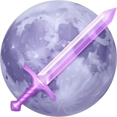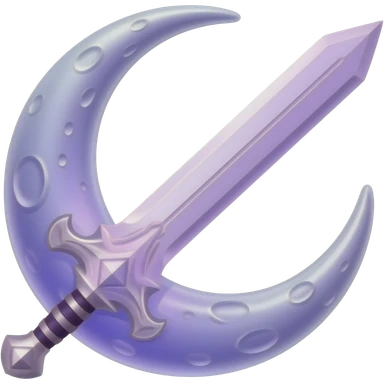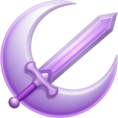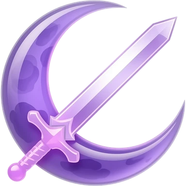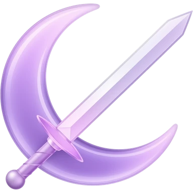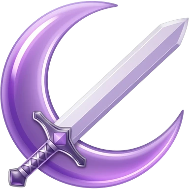 transparent purple detailed crescent moon with an elegant detailed glowing transparent sword, emoji style. The sword is positioned so that the blade points away from the moon and the hilt faces toward the moon (blade facing outward, not toward the moon). Soft violet and pink glow emoji