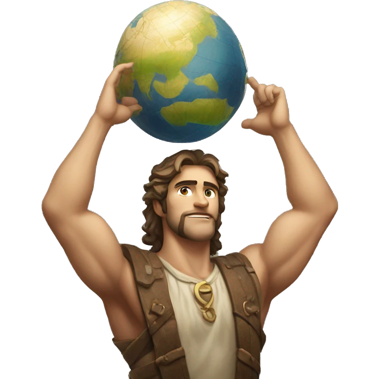 An emoji of Atlas, the mythological figure, depicted holding up the globe on his shoulders, symbolizing strength and endurance emoji | AI Emoji Generator