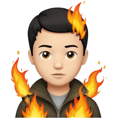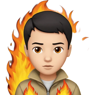 An Emoji of boy with short black hair, who can be described by three words: risk-taker, fire, realist emoji