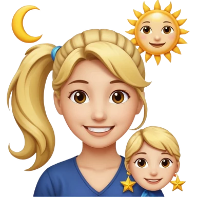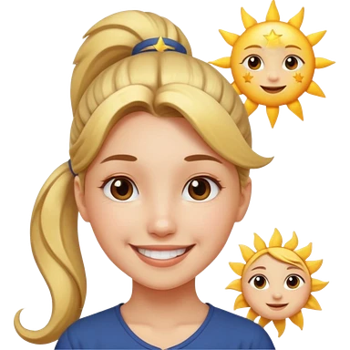 An Emoji of girl with ponytail, who can be described by three words: sun, moo, star emoji