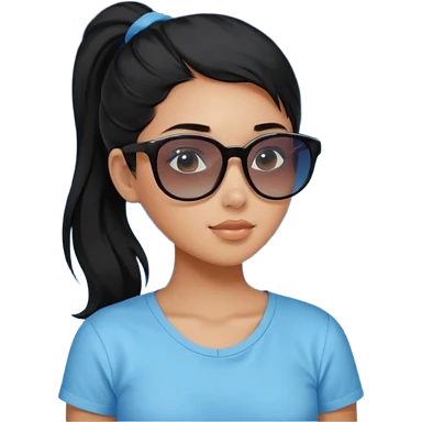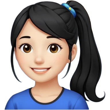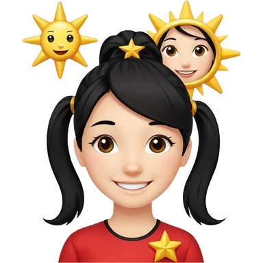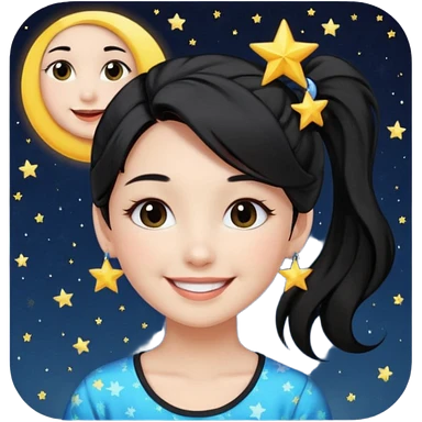 An Emoji of girl with black ponytail hair, who can be described by three words: sun, moo, star emoji