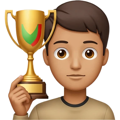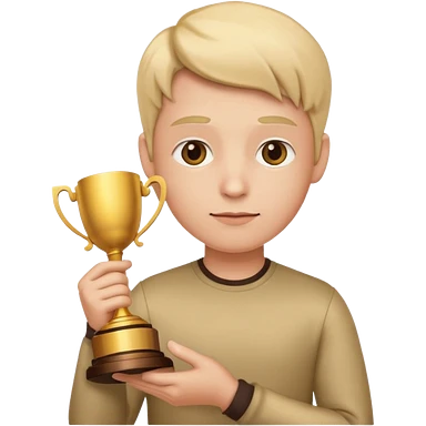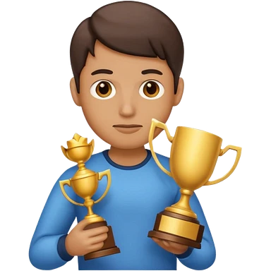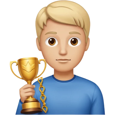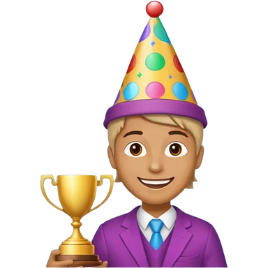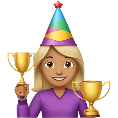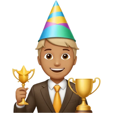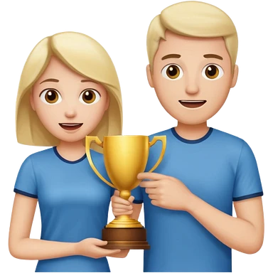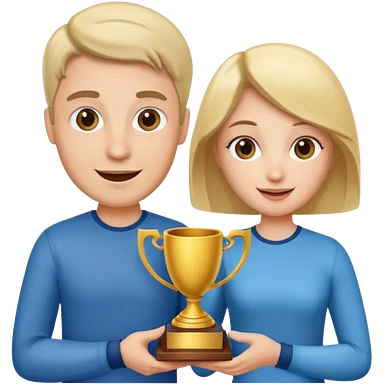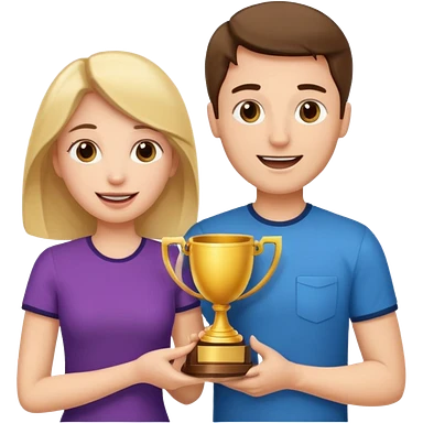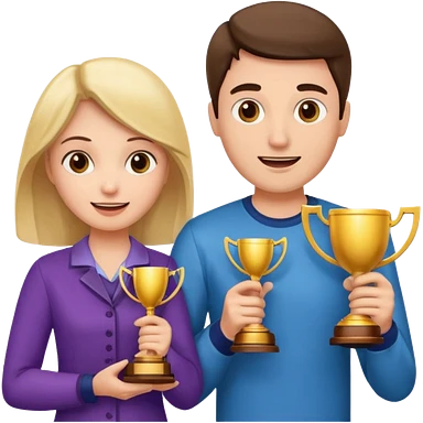 Create an emoji that reflects man & woman that is happy, and that asks a lot of questions and have trophy all around him & her emoji