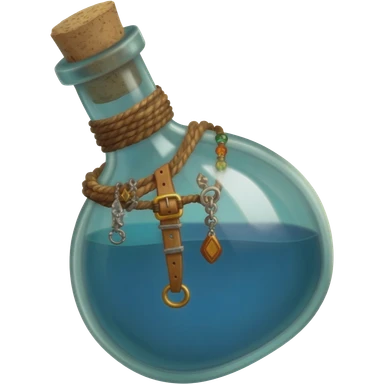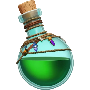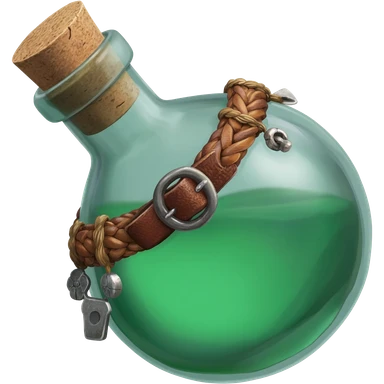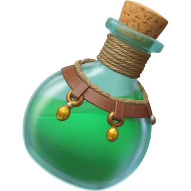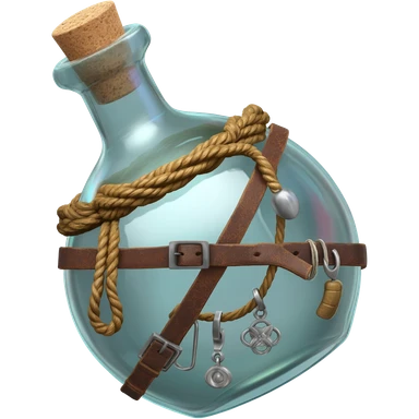 an empty round potion bottle a little rotated with a cork and decorations on the bottle like ropes and belts and random stuff emoji | AI Emoji Generator