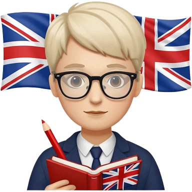 an English writer/playwriter with an UK flag in tha background emoji | AI Emoji Generator