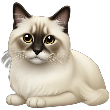 an entire birman kitten, small face, some spots of dark on the ears and middle of the face, laying down relaxed on a shoulder. emoji | AI Emoji Generator