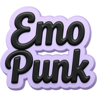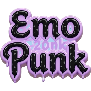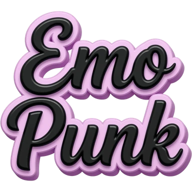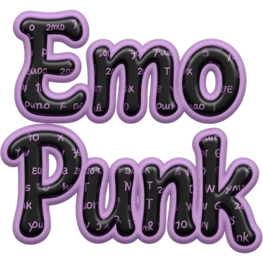 Exact words "Emo Punk" in black typography Girly lettering, filled with an emo punk y2k 2000's repeated pattern, in an emo color scheme, 3d render, 8k. Must have no emoji icons, must have no emoji faces emoji