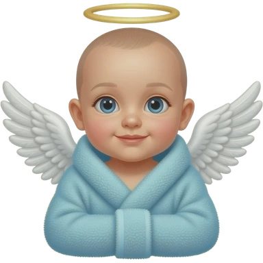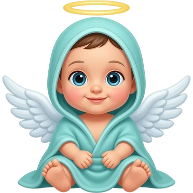 Baby boy wrapped in an aqua towel with halo and angel wings with no hair emoji