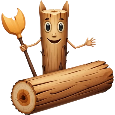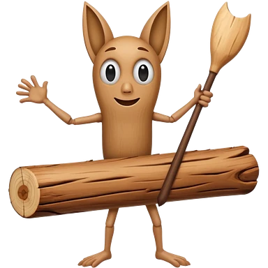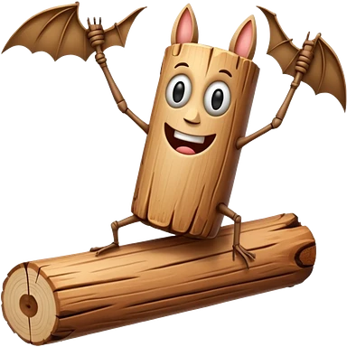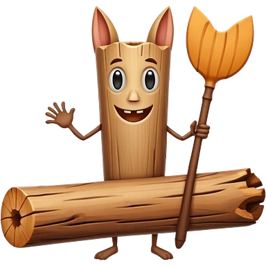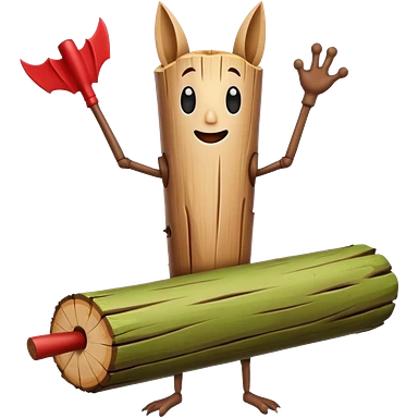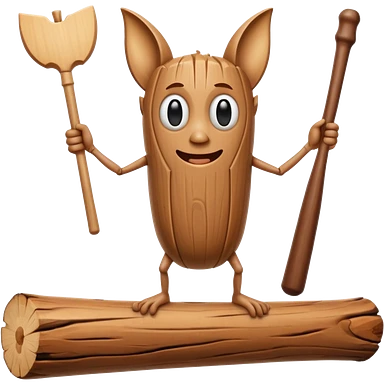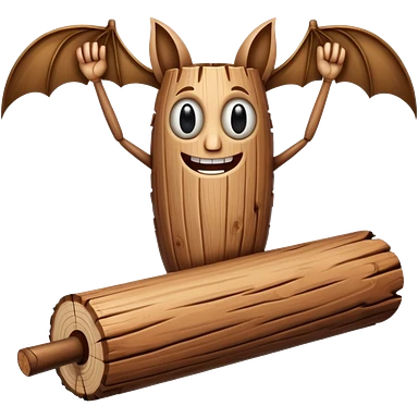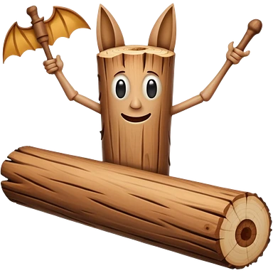 The character is an anthropomorphic wooden log with a cartoonish face, human arms and legs, and a long wooden bat, giving it a surreal, humorous appearance. emoji