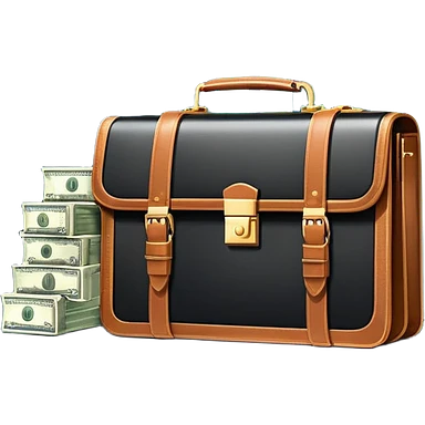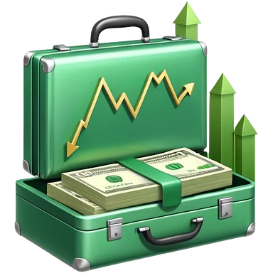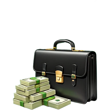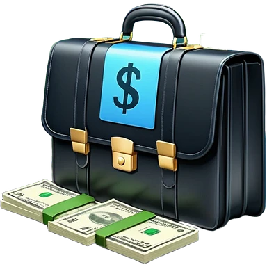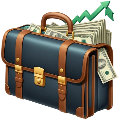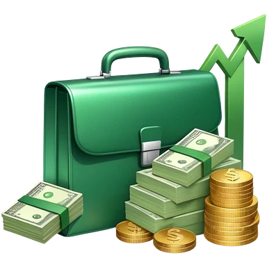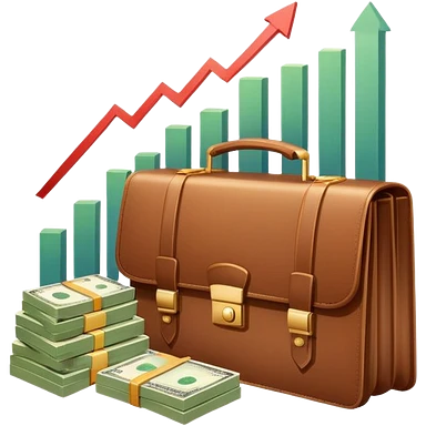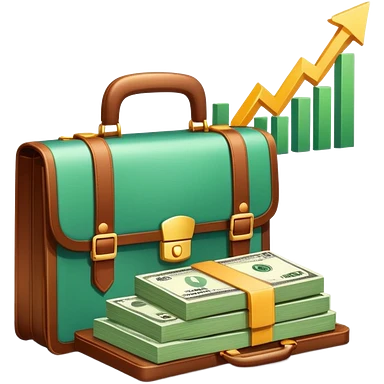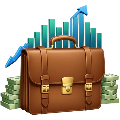 An icon showing a briefcase, a stack of documents, and a rising bar chart, representing business and entrepreneurship. The design features a laptop and a lightbulb, symbolizing innovation and strategy. Transparent background highlights the dynamic world of business growth and leadership.emoji