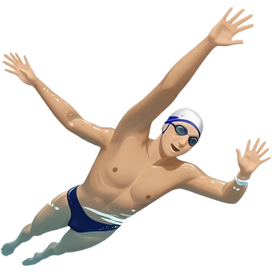 An icon showing a close-up of a swimmer’s hands cutting through the water in a pool. The swimmer is partially submerged, with water ripples and a blurred background, emphasizing the fluid motion and focus. Transparent background highlights the grace and speed of swimmingemoji