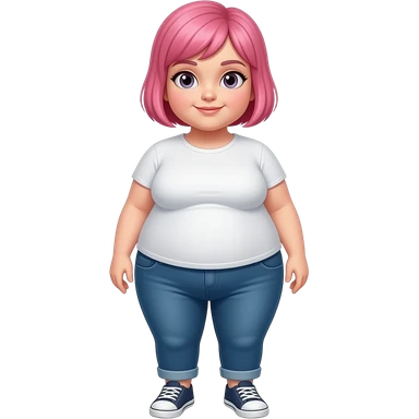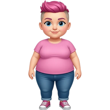 A full body obese girl with pink short hair that is buzzcut on the side emoji