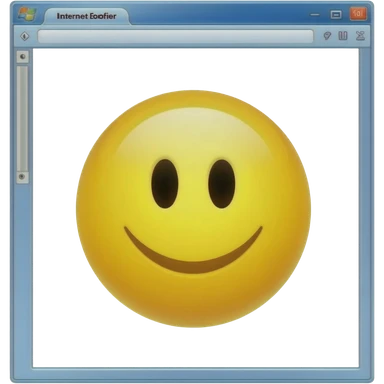 A Windows XP computer with an Internet Explorer window open, and in that, a smiley face. emoji