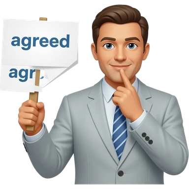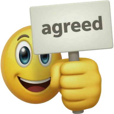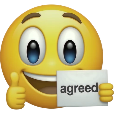 Yellow smiley face nodding holding up a sign that says "agreed" emoji