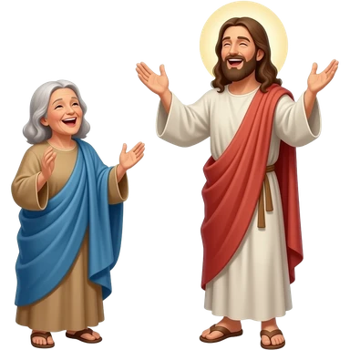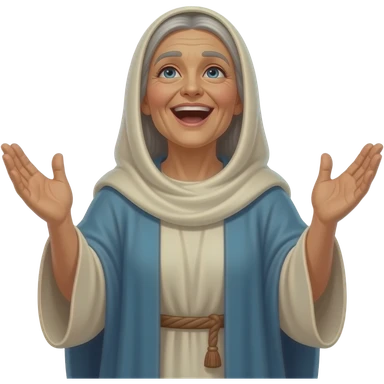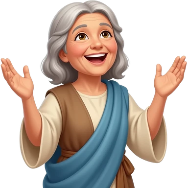 An old woman wearing clothing from ancient biblical times looking up at God with his hands stretched out with a look of joy on his face singing praises to God emoji