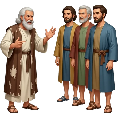 An old man wearing draped clothing from biblical times, arguing with 3 men emoji