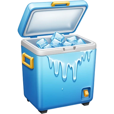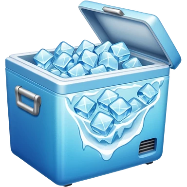 An open gray cooler getting dumped out with a bunch of ice spilling out emoji | AI Emoji Generator