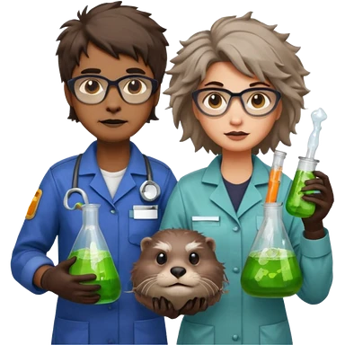 an otter disguised as a woman garbage collector next to a man mad scientist emoji