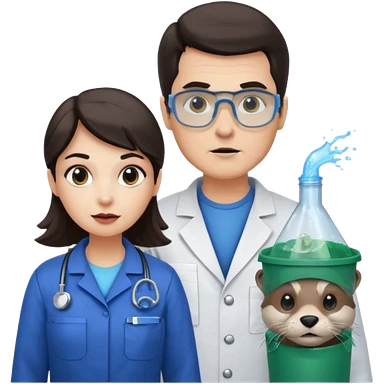 an otter disguised as a woman garbage collector next to a white man mad scientist with dark hair emoji