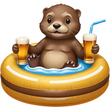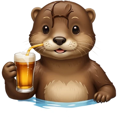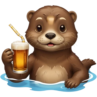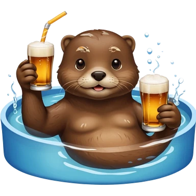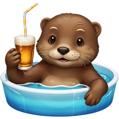 an otter sitting in an inflatable pool filled up with beer who is sipping directly from the pool made of beer with a little straw emoji | AI Emoji Generator