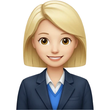 blonde teacher with short hair and green eyes and black glasses smiling emoji