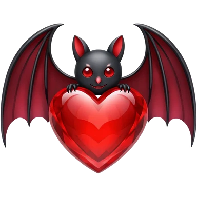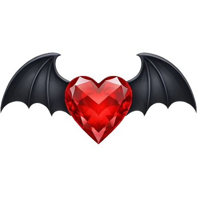 crystal red heart with black bat wings emoji