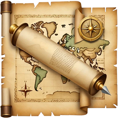 An icon featuring an ancient scroll, a quill, and a historical artifact like a shield or coin. The design includes a backdrop of old maps and timelines, symbolizing the study of past events and civilizations. Transparent background highlights the exploration of history. emoji