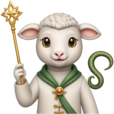 A lamb waves a magic wand. A snake holds tarot cards. emoji
