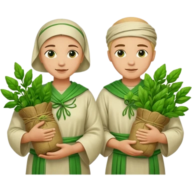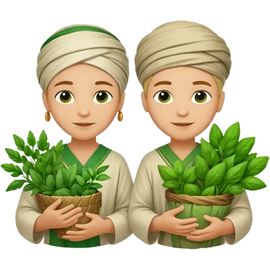 Ancient Healers with herbs emoji | AI Emoji Generator