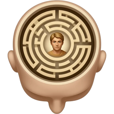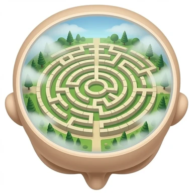 a view from above into the open human head, which contains the space of the ancient labyrinth emoji