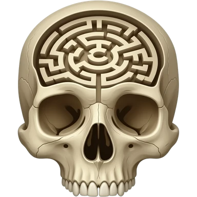 view from above into an open human skull containing the space of an ancient labyrinth emoji