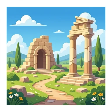 ancient palace in the woods on an island emoji