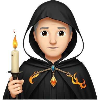ancient man in black hoodie hold a black candle emoji | AI Emoji Generator